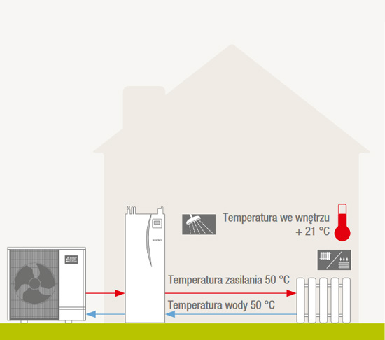 Już w informacji o remoncie kotłowni wspominaliśmy, że najczęściej polecamy pompy ciepła Mitsubishi Heavy Industries. Ten znany producent ma w swojej ofercie pompy ciepła, które w zimie grzeją pomieszczenia i wodę użytkową, a w lecie mają funkcję chłodzenia i zastępują klimatyzację.