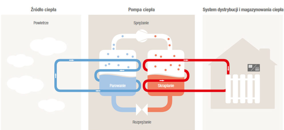 W skrócie sposób działania pompy ciepła wygląda tak: